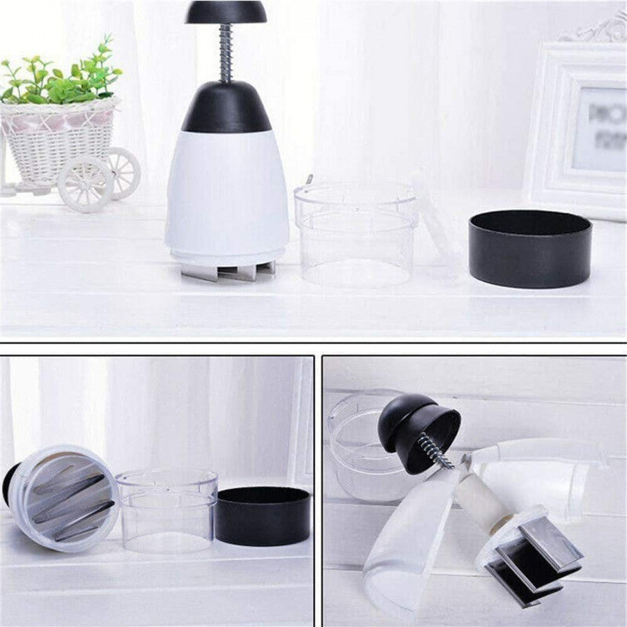 Veggie Chopper for Kitchen - Kitchen Accessories Items, 3 Blades for Effortlessly Chopping Onion, Vegetables, and Fruits, Vegetable Hand Chopper Cutter: The Twist Cut Hand Food Processor is an energy-saving alternative to an electric food processor. It has all-purpose use. The blade insert cuts fruit, vegetables, and herbs. The whisk insert mixes whipped cream or salad dressings, dips, etc. The removable twist mechanism locks down to save space. Then add some tuna. Add a little mayonnaise and you?ve just made an amazing tuna fish salad! Breakfast on the Go: Place a hard-boiled egg, a bit of ham, onion and green pepper under the blades. Dice and then toss in to a tortilla for the perfect breakfast on the go! Potatoes: One push of the SlapChop produces sizeable pieces for stews, two pushes make them in to home fries, three pushes produce pieces perfect for omelets or burrito ingredients!